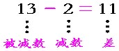 (2)教师在表示13的计数器的个位上拨去2颗珠子,让学生根据拨的过程说出一道减法算式。