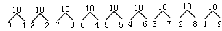 (2)请同学们数树上的果子,然后让学生们将这棵树上的果子摘下来,放进老师事先准备的两个篮子里。问:将这10个果子分别放进两个篮子里,一共有几种分法?