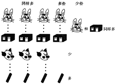 教师说明:木头多、小猪少,我们还可以说木头比小猪多,小猪比木头少。