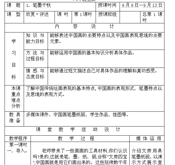 第1课 笔墨千秋 第2课 梅竹言志 第3课 寄情山水 第4课 用画笔触摸细节 第5课 静物画有声 第6课 公益招贴设计 第7课 远古的呼唤