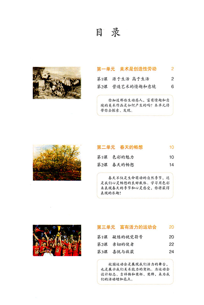 人教版新版七年级美术上册教材目录...