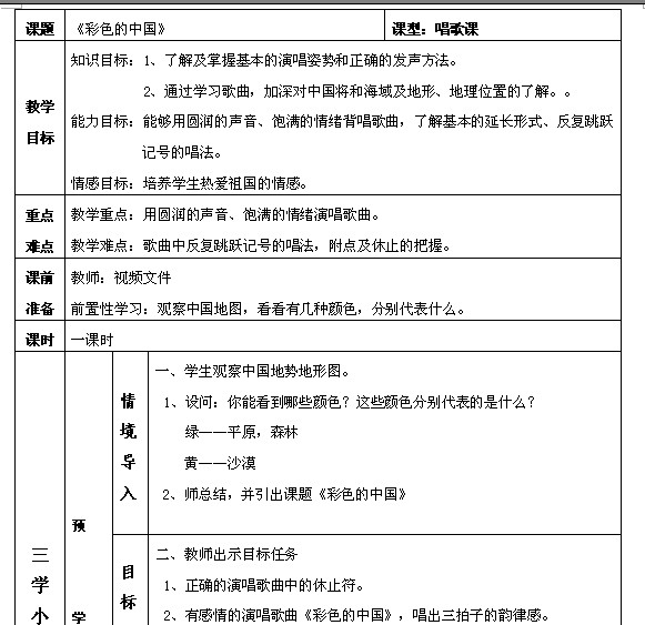 1-1 《彩色的中国》 课型:唱歌课