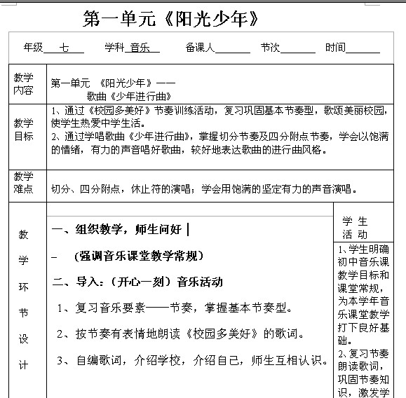 第一单元 《阳光少年》—— 歌曲《少年进行曲》