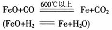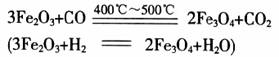 实验证明,无论是用CO作还原剂,抑或是用H2作还原剂,氧化铁(Fe2O3)的还原过程都是逐步进行的[2]: