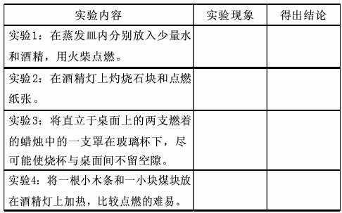 [学生回答]实验1和实验2的现象是酒精和纸张燃烧而水和石块不燃烧;结论是燃烧与物质的本性有关。