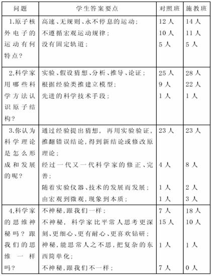 (2) 通过体验科学家思维的教学, 学生不仅了解了人类对原子结构的认识历史, 还体验到了科学家认识原子结构的具体过程, 亲身感受了科学理论的形成过程, 并认识到科学家认识原子结构的思维并不神秘, 自己通过努力也可以成为科学家。