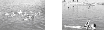 教师:同学们,你们在夏天喜欢游泳吗? 学生:喜欢。 老师:那你们到水里后,是漂浮在水面上,还是沉在水下呀? 学生:(七嘴八舌,有的说沉入水里,有的说漂在水面上,但大数人认为会沉到水下) 老师:请同学们看下面几幅图片:(死海图片)