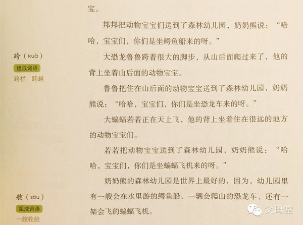 14.熊奶奶的幼儿园是世界上最好的,因为,这里有会在水里游的鳄鱼船,有会爬山的恐龙马精神车,还有会飞的蝙蝠飞机!