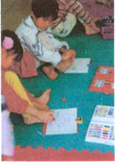 2、随着音乐的变化站立起来,幼儿自由组合进行游戏《找朋友》。 (活动大肌肉动作)。