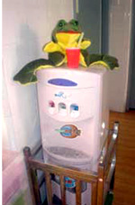 (四)分组粘贴,在集体中交流。(“青蛙饮水区”与其“爱心小告示”如下图)