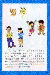 这一天.“坏坏”一觉睡到太阳晒屁股才起床,他肚子饿得“咕咕”直叫。“到哪儿去弄点吃的呢?”他盘算着出了门。走着走着,他来到森林边的一幢房子前,这是皮皮和点点的家。坏坏看见他们的爸爸和妈妈正笑着说什么,皮皮和点点显得很高兴,咪咪和汪汪也在一边乐呵呵的。