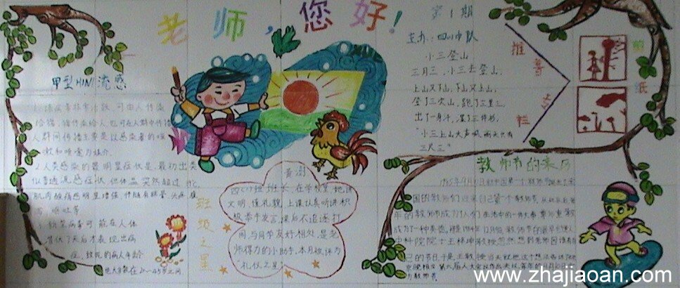 教师节黑板报,这几组类似手抄报形式。主题是“老师,您好”,尊师永恒的主题。