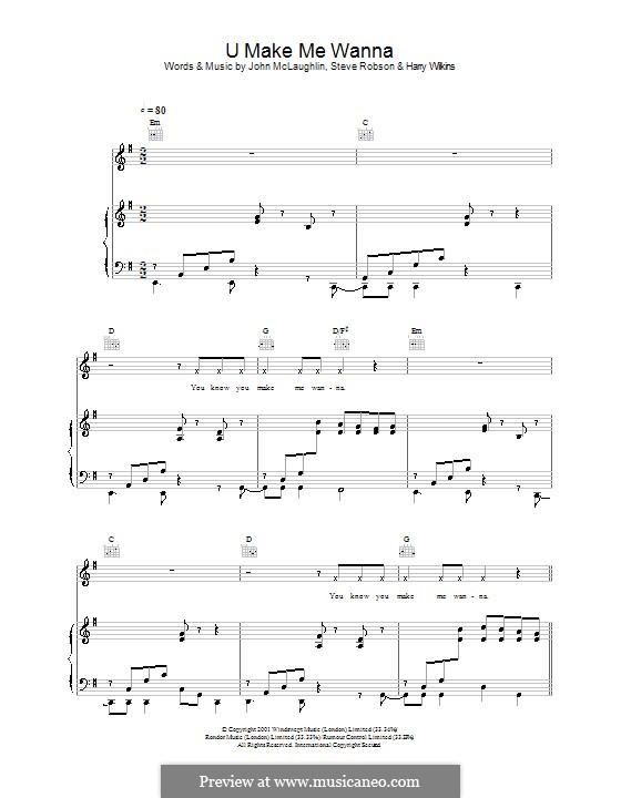 BLUE: U MAKE ME WANNA - PIANO, VOCAL & GUITAR