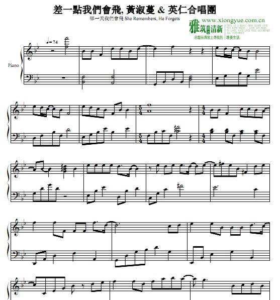 琴譜 Sheet Music 国语流行音乐乐谱 楽譜 五线谱 钢琴谱 PDF格式 共4页 高清晰版 可打印
