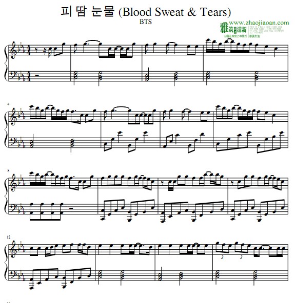 韩国流行音乐乐谱 楽譜 五线谱 钢琴谱 PDF格式 共4页 高清晰版 可打印