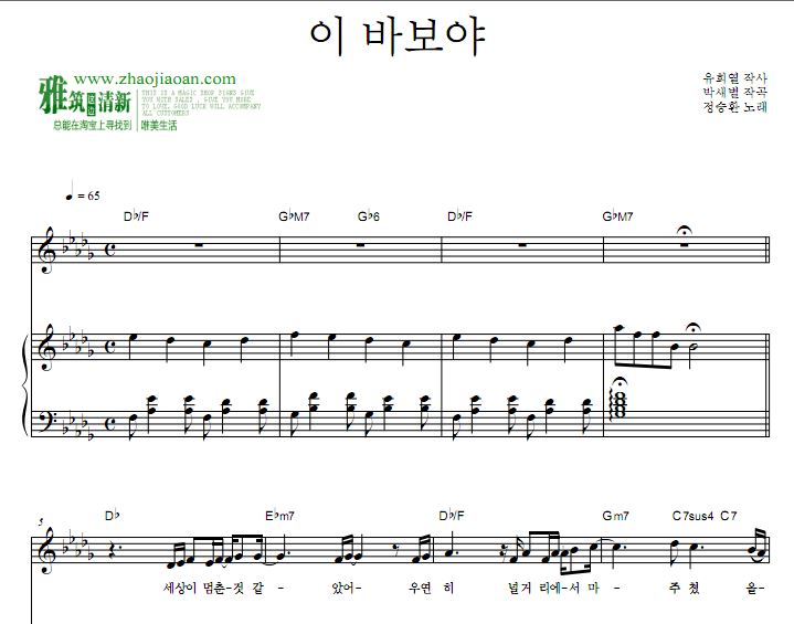 琴譜 Sheet Music 韩语歌词