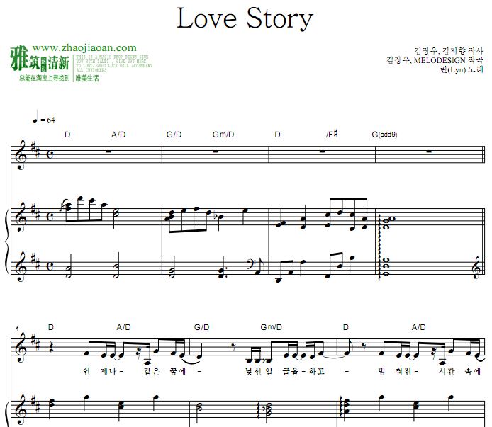 韩国流行音乐乐谱 楽譜 五线谱 钢琴谱 PDF格式 共4页 高清晰版 可打印