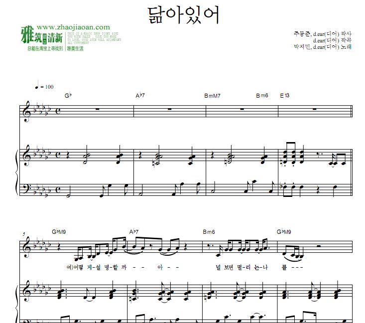 d.ear &朴智敏 逐渐相似 Look Alike钢琴谱