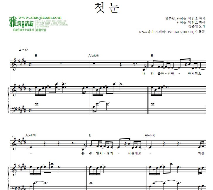 鬼怪OST Part.8 郑俊日 初雪钢琴谱
