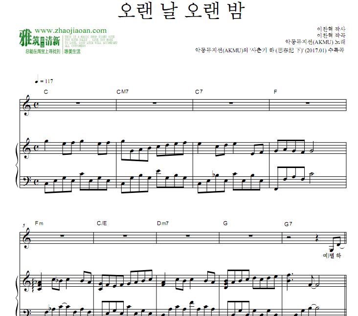 《思春记 下(WINTER)》长日长夜 / Last Goodbye 악동뮤지션 AKMU 思春记 长日长夜钢琴谱 AKMU Last Goodbye钢琴谱
