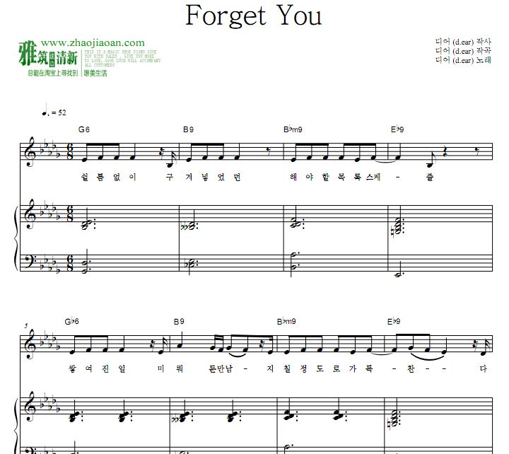 D.ear Fine收录曲 Forget You钢琴谱