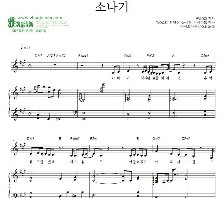 琴譜 Sheet Music 韩国流行音乐乐谱 楽譜 五线谱 钢琴谱 PDF格式 共5页 高清晰版 可打印