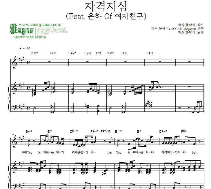琴譜 Sheet Music 韩国流行音乐乐谱 楽譜 五线谱 钢琴谱 PDF格式 共5页 高清晰版 可打印