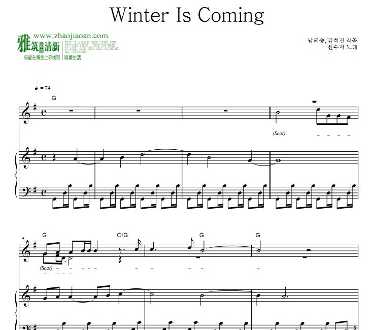 鬼怪 OST Part.11 韩秀芝 Winter is coming钢琴伴奏谱 韩秀芝 - Winter is coming钢琴伴奏谱