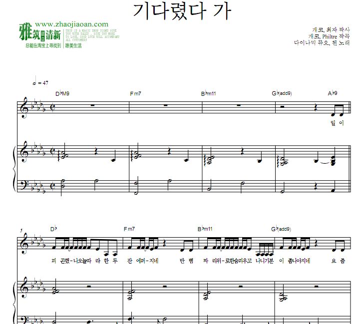琴譜 Sheet Music 韩国流行音乐乐谱 楽譜 五线谱 钢琴谱 PDF格式 共6页 高清晰版 可打印