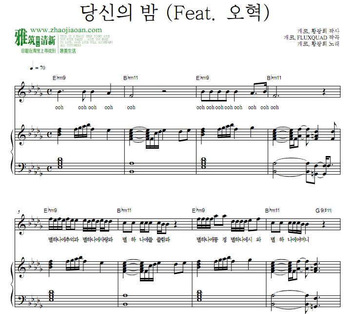 无限挑战 伟大的遗产 黄光熙& Gaeko(Feat.吴赫) 你的夜晚 / Your Night钢琴谱