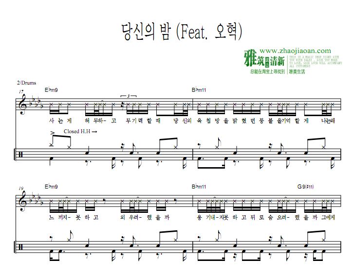 无限挑战 黄光熙&Gaeko (Feat.吴赫)你的夜晚鼓谱
