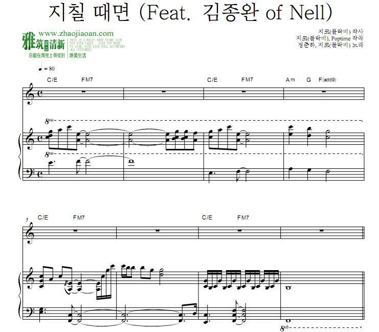 无限挑战 郑埻夏&Block B ZICO(Feat.金钟万Nell )疲惫的时候钢琴谱