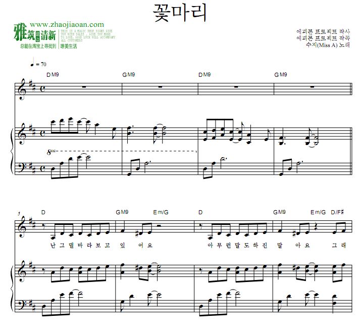 琴譜 Sheet Music 韩国流行音乐乐谱 楽譜 五线谱 钢琴谱 PDF格式 共5页 高清晰版 可打印