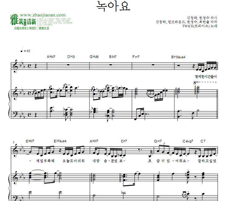 琴譜 Sheet Music 韩国流行音乐乐谱 楽譜 五线谱 钢琴谱 PDF格式 共5页 高清晰版 可打印