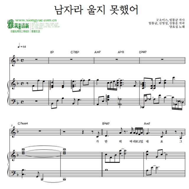 梁耀燮 因为是男人所以没流泪钢琴伴奏谱