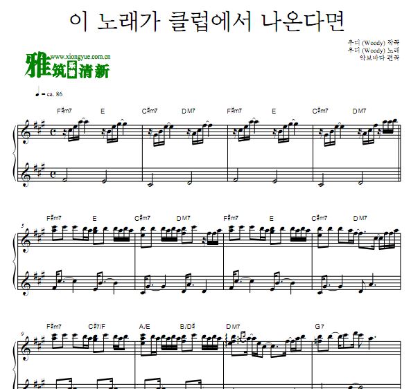 이 노래가 클럽에서 나온다면琴譜 Sheet Music 韩国流行音乐乐谱 楽譜 五线谱 钢琴谱 PDF格式 共5页 高清晰版 可打印
