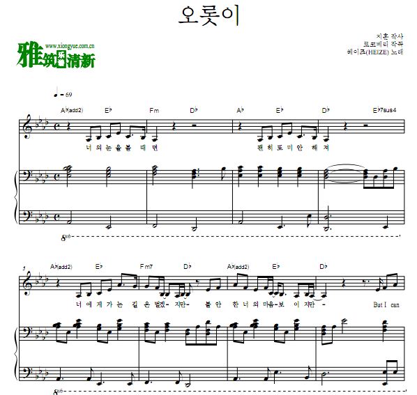 琴譜 Sheet Music 张多慧 Heize 歌谱 钢琴伴奏谱 楽譜 五线谱 钢琴谱 PDF格式 共4页 高清晰版 可打印