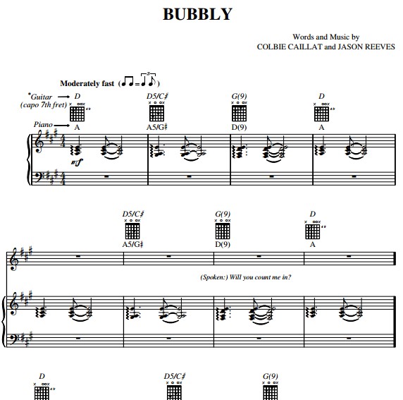 COLBIE CAILLAT - BUBBLY钢琴伴奏谱