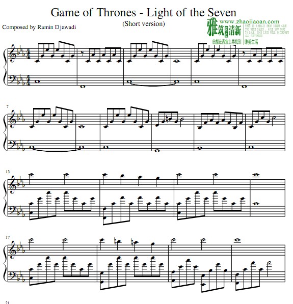 琴譜 Sheet Music 欧美流行音乐乐谱 楽譜 五线谱 钢琴谱 PDF格式 共6页 高清晰版 可打印