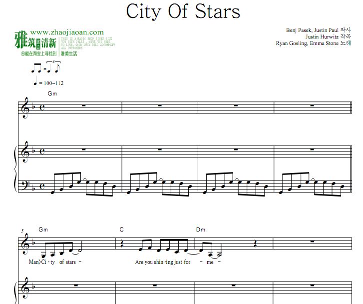 中文名 爱乐之城预告片 City of Stars钢琴伴奏谱
