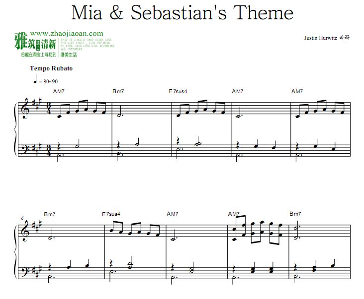爱乐之城 Mia & Sebastian's Theme钢琴谱