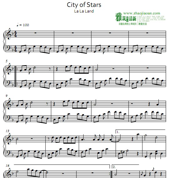 琴譜 Sheet Music 欧美流行音乐乐谱 楽譜 五线谱 钢琴谱 PDF格式 共2页 高清晰版 可打印