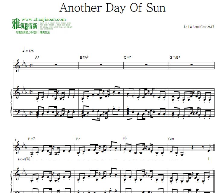 爱乐之城电影插曲钢琴谱 Another Day Of Sun钢琴谱