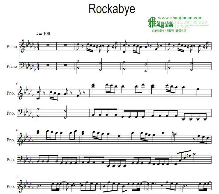 琴譜 Sheet Music 欧美流行音乐乐谱 楽譜 五线谱 钢琴谱 PDF格式 共5页 高清晰版 可打印
