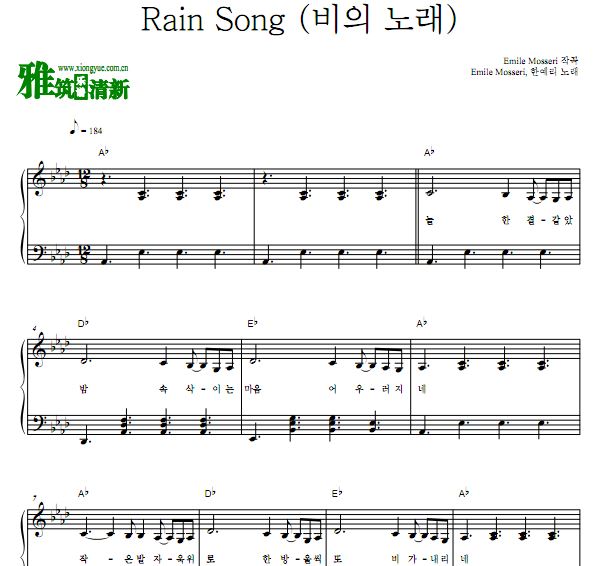 Rain Song 水芹菜/Minari/米纳里插曲钢琴谱