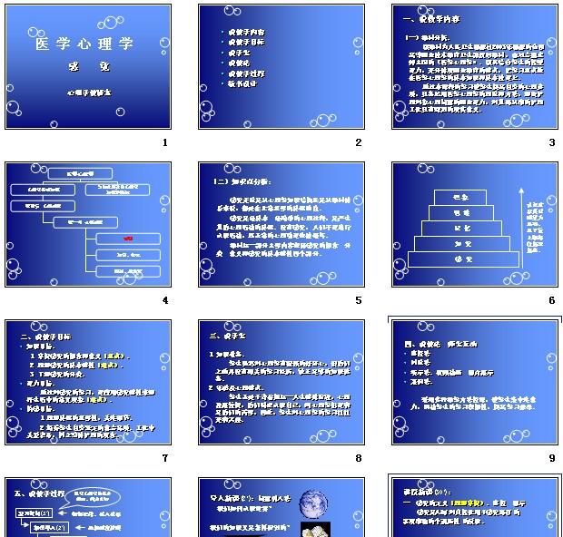 (一)教材分析: 该教材为人民卫生出版社2003年出版的全国高等职业技术教育卫生部规划教材,由刘志超老师主编的《医学心理学》。该书结合学生的接受能力,充分体现职业教育的特点,把学习重点放在医学心理学的基本知识和基本技能上。 通过本课程的学习使学生提高自身的心理素质,具备运用医学心理学的理论和方法,解决护理对象心理问题的职业能力,对其将从事的护理工作具有深刻的现实意义。
