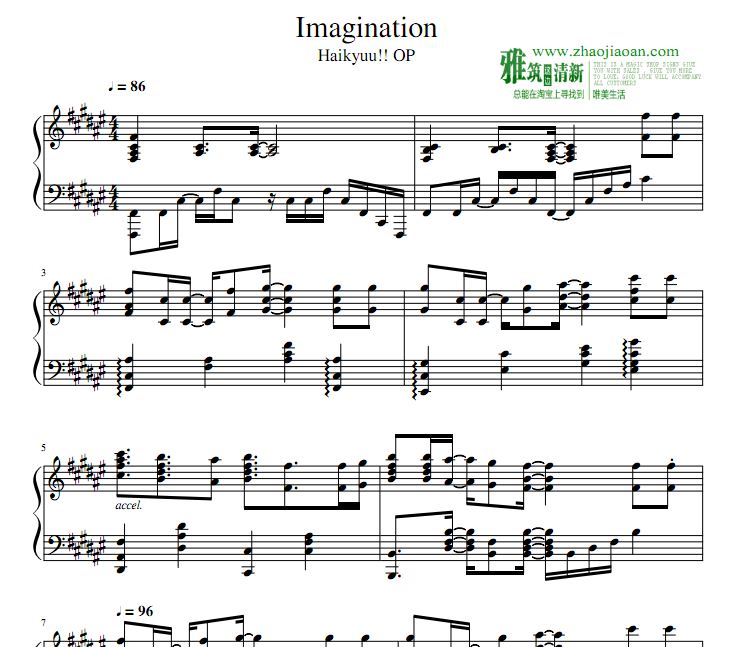 T叔版 Haikyuu!!排球少年主题曲 Imagination钢琴谱(可试听)