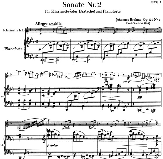 Sonata for clarinet (viola) and piano Op. 120 no. 2.