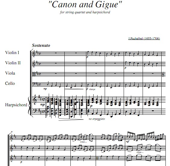 J.Pachelbel Canon and Gigue for string quartet and harpsichord 帕赫贝尔 卡农与吉格弦乐四重奏