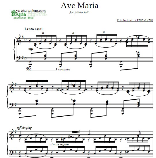 F.Schubert (1797-1828) for piano solo Ave Maria